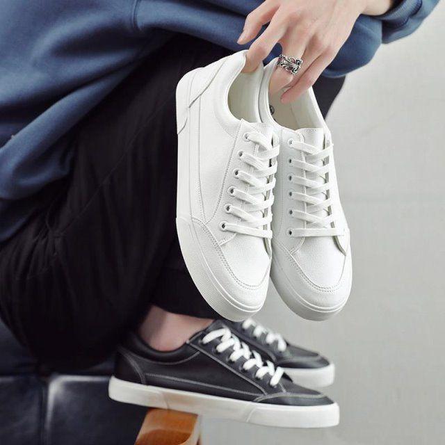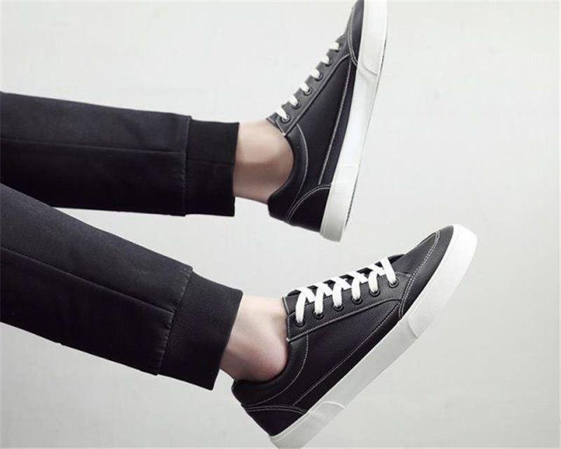 HKCP White Shoes For Men Plus Size 39-47 Leather Black Sneakers Mens Shoes Breathable Fashion Low Cut Casual Running Shoes For Men On Sale