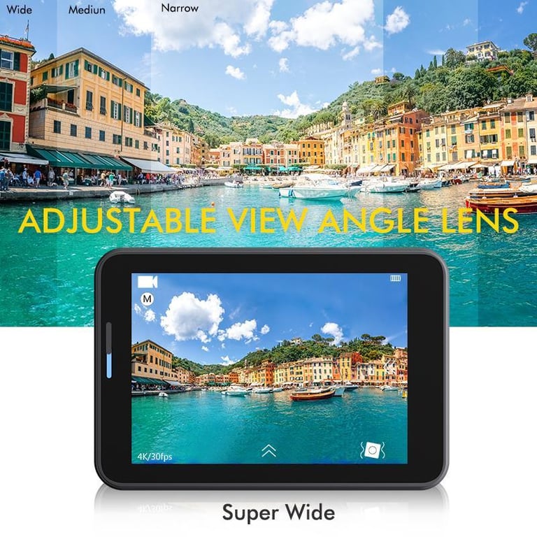 Adjustable Field of View (FOV):Adjust the view angle for Super Wide, Wide, Medium and Narrow. This action camera also has the distortion calibration feature, which offers image distortion improvements.