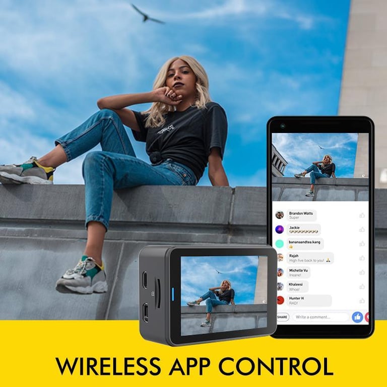 Wireless APP Control:Stay connected with built-in 2.4Ghz WiFi. Connect the camera to your smart phone, Share your pictures and videos directly to social media.