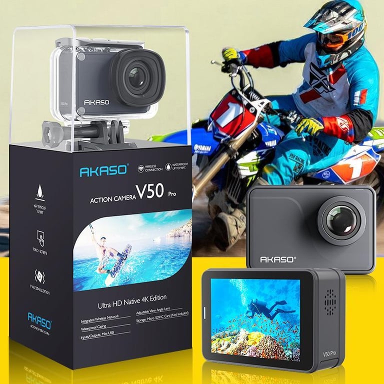 AKASO V50 PRO Native 4K/30FPS 2.7K/30FPS 1080P/60FPS HD 20MP WiFi 30M Waterproof Action Camera EIS Touch Screen Digital DV Camcorder Support External Mic Remote Control Sports Camera