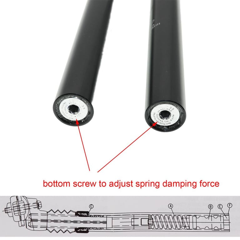 High-strength aerospace aluminum alloy tube, 50mm adjustable preload suspension travel, standard clamp with 2-bolts ensure safety in riding. Coil spring damping offer comfortable experience