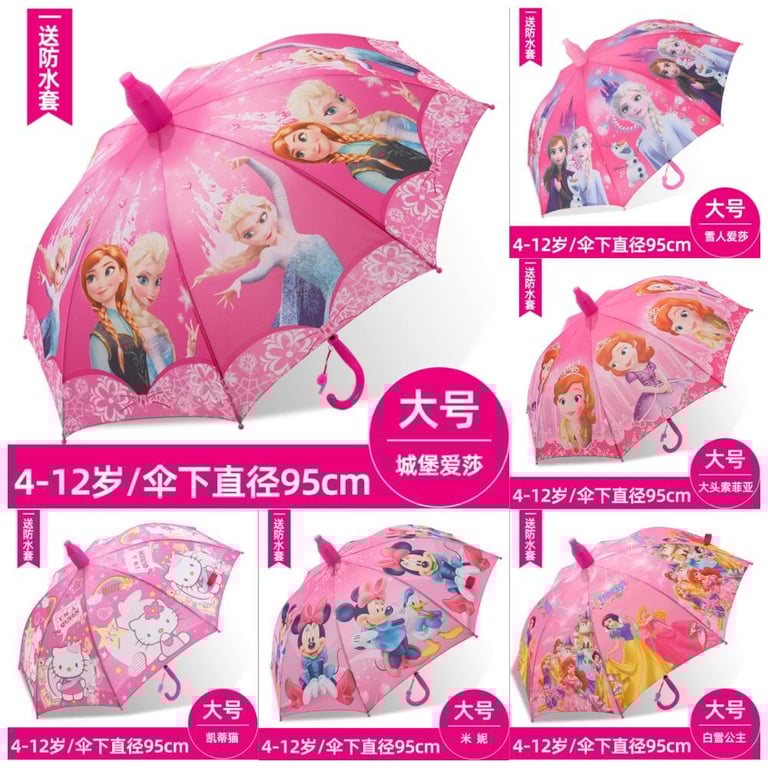 WholeComfort Cute Cartoon Children's Automatic Umbrella Long Handle 3D Children's Umbrella Sunshade Kindergarten Pupils