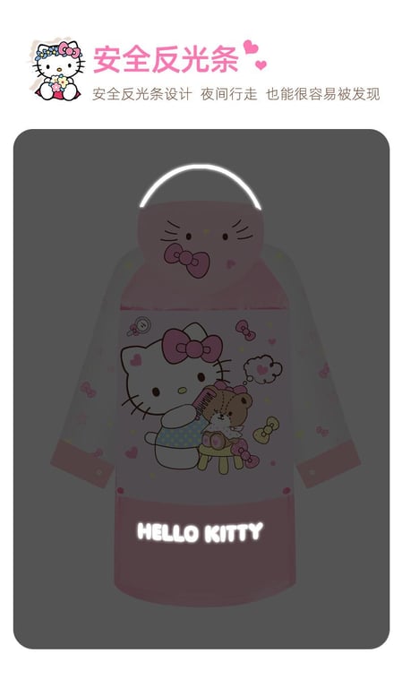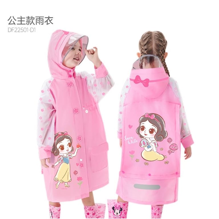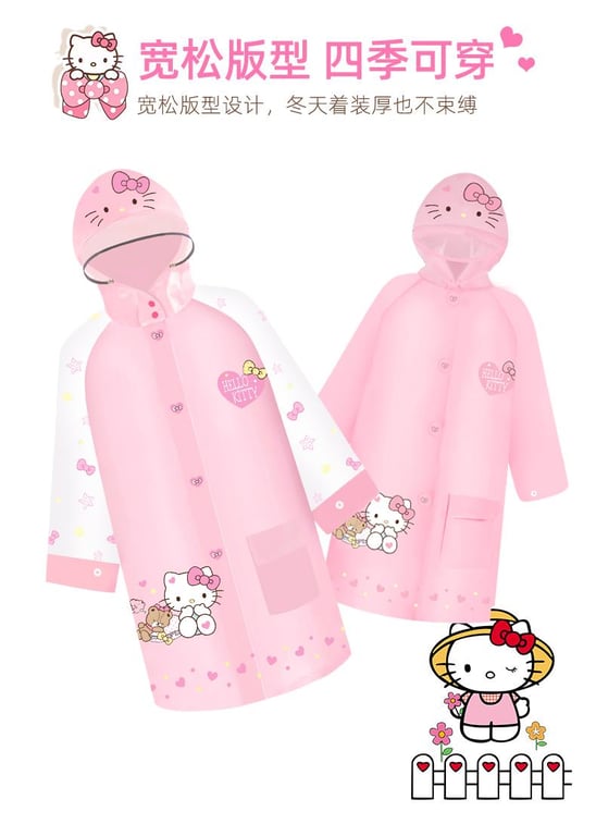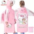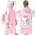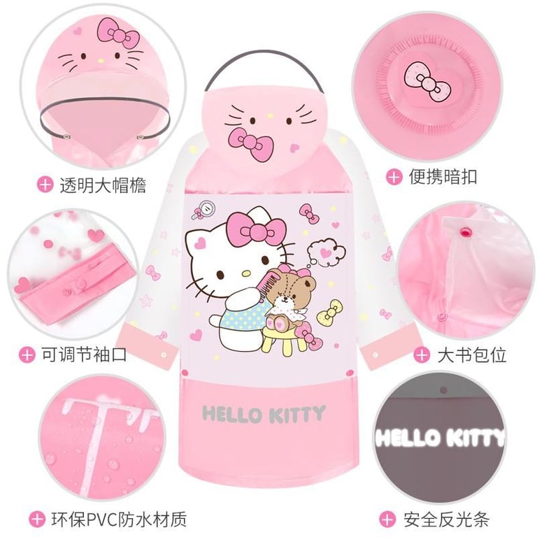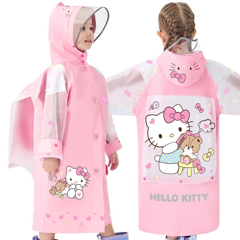 Kids Raincoat Rain Poncho for Girls Kitty Cartoon Hooded Rain Slicker Waterproof Rainwear School Bags Fit