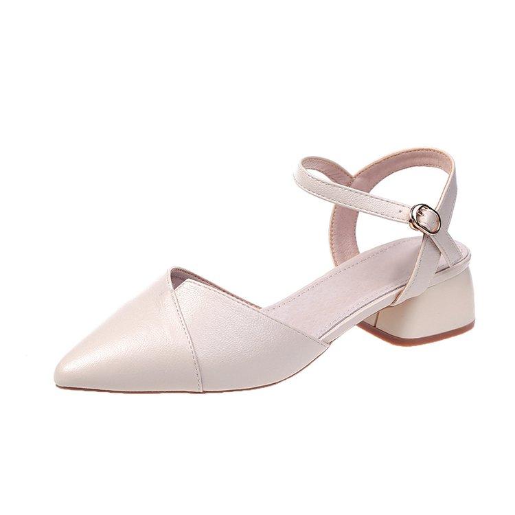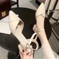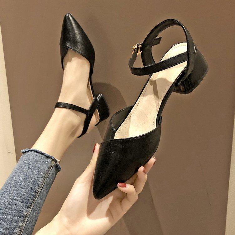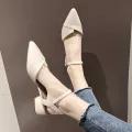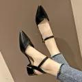 2022 Autumn New Pointed Toe Chunky Heel Strap Sandals Fairy Style Closed Toe Internet Celebrity High Heel All-Match Semi-high Heeled Single-Layer Shoes