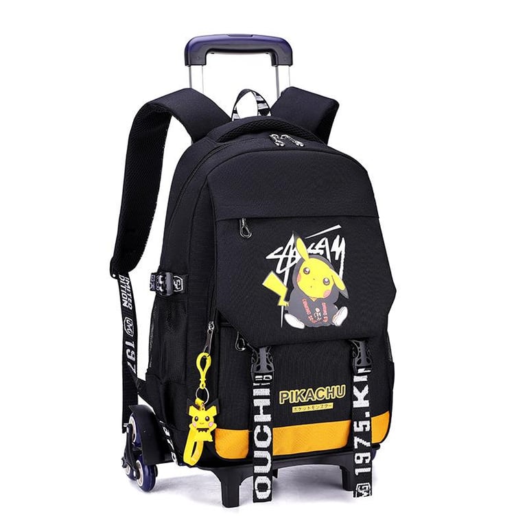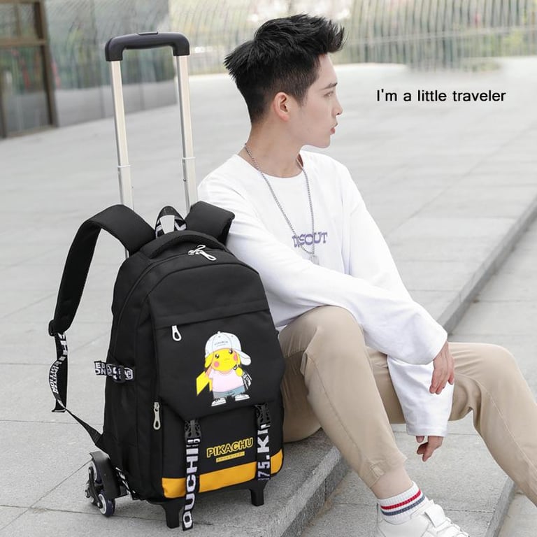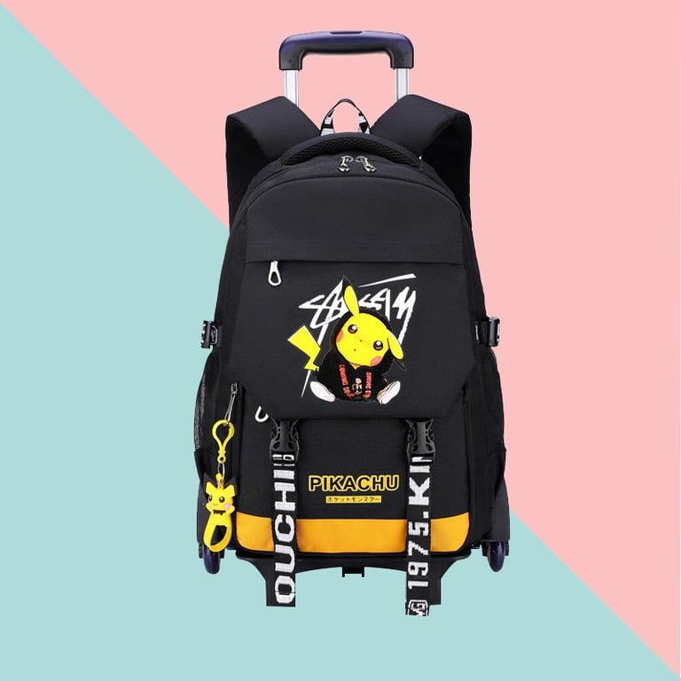 Anime Pikachu Trolley Bag Six Wheels Climbing Stairs Boys Shoulder Bag Primary School Student Backpack Junior High School Student Large capacity