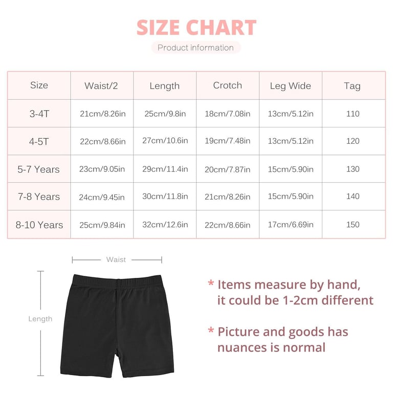 SLAIXIU Kids Girls Shorts Summer Pure Color Black White Pink Grey High Flexibility Safety Bottom Underwear Milk Fiber Short Pants Girl Children's Clothing for 3-10 Years Kids (1pcs)