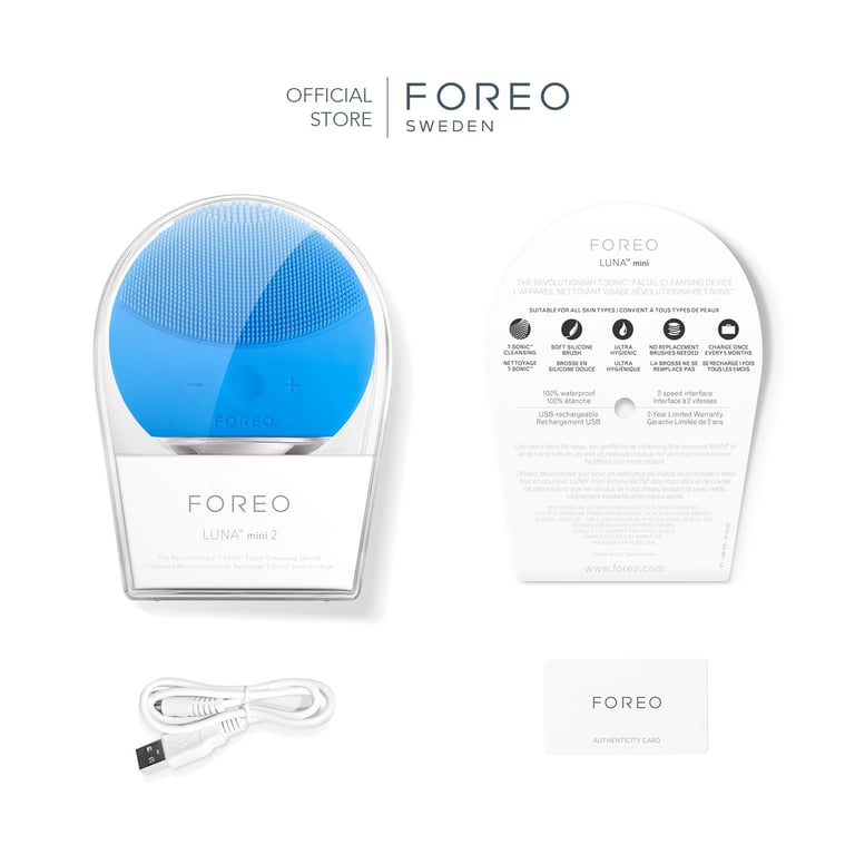 FOREO LUNA mini 2 Deep Facial Cleansing Brush for All Skin Types, Ultra-hygienic silicone [Rechargeable 300 uses/charge, 2-Year Warranty]