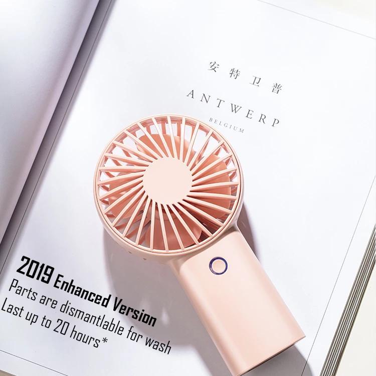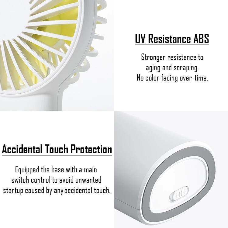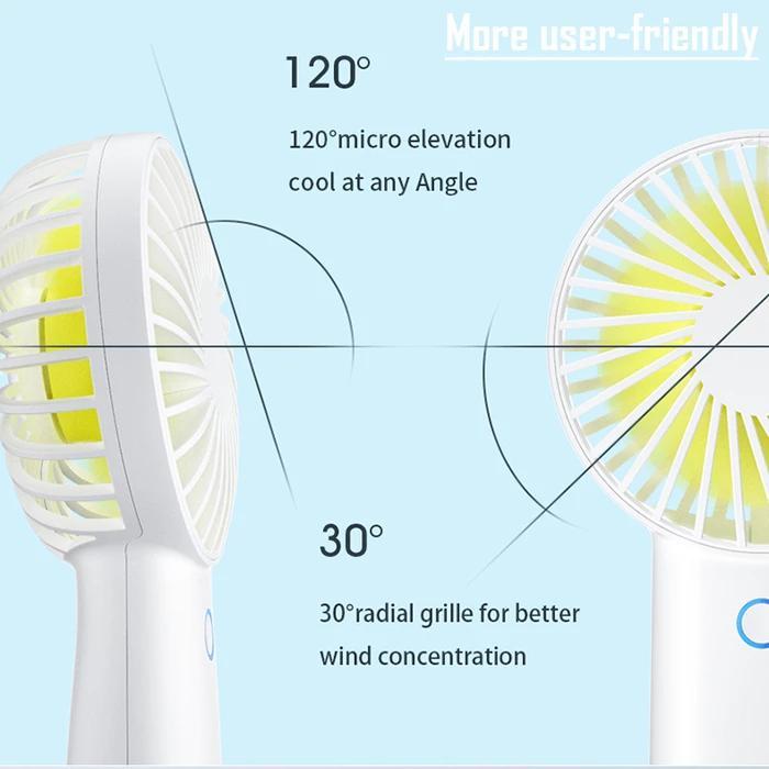 MULTI-FUNCTIONAL FAN AND MINI SIZE — It can be desktop fan or handheld fan to satisfy your different needs with cool design, you can put the fan upright or diagonally on the table,also great for office.You can carry it with you easily when you go out for a picnic, shopping, traveling, camping, etc. It is small in size (3.4-inch wide and 6.3-inch long Weight: 6.1 oz) and can easily fit in your pocket, backpack, or beach bag.