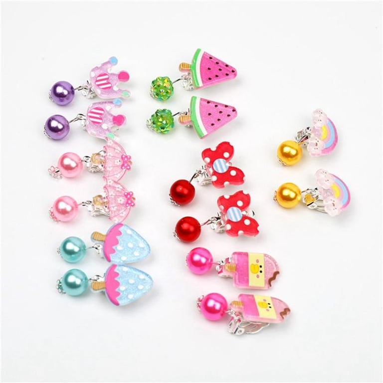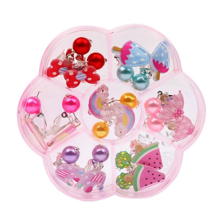 7 Pairs Mix In Box Lovely Children's Baby Girl Clip Earrings Ear Clip No Pierced Party Cute Jewelry Gifts