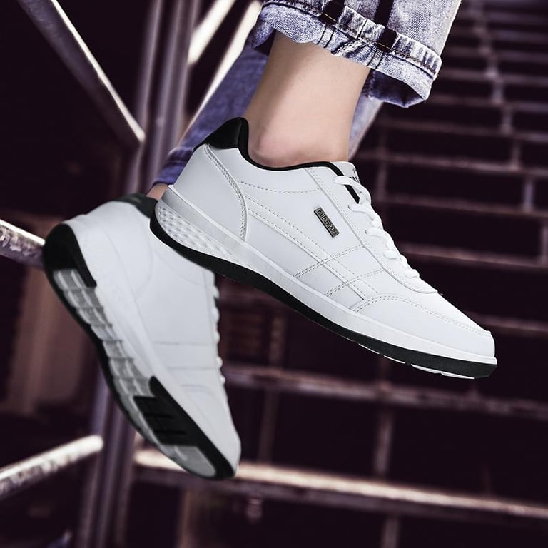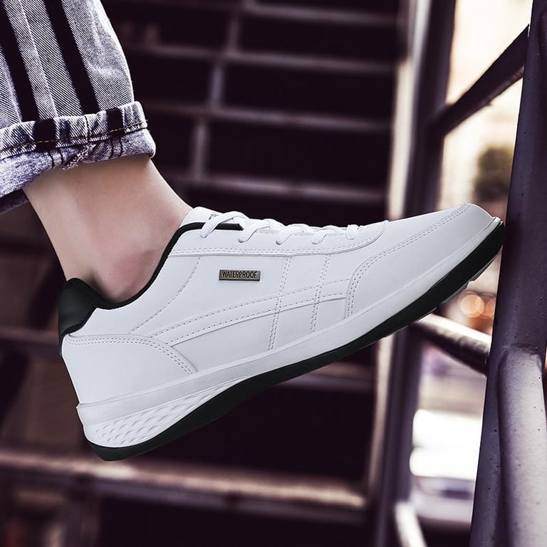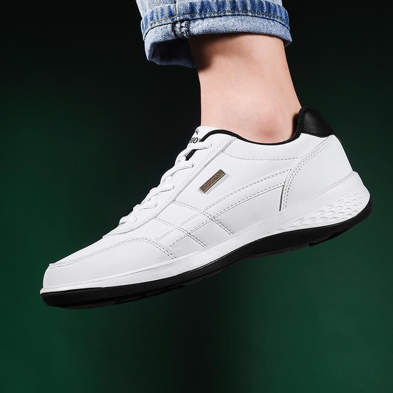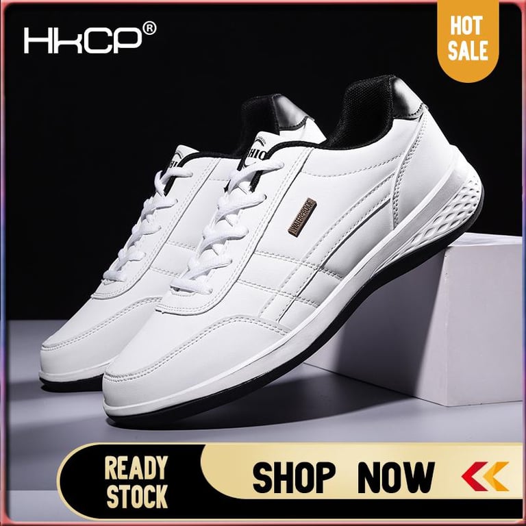 HKCP White Shoes For Men Plus Size 39-47 Leather Black Sneakers Mens Shoes Breathable Fashion Low Cut Casual Running Shoes For Men On Sale
