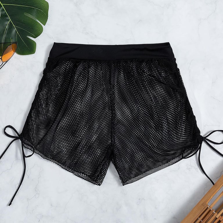 Fantnesty Women Side Drawstring Mesh Cover Up Shorts Beach Wrap Bikini Wraps Ups For Swimwear Ruffle Pantsbikini Outfits Two Piece Push Chubby