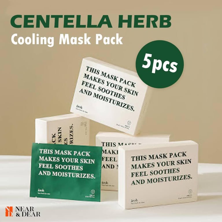 Centella Herb Cooling Mask 5pcs \n\nA hypoallergenic, slightly-acidic mask sheet soothes problematic skin while delivering hydration and nutrition.\n\nInfused with Centella Asiatica extract and other active ingredients to improve the appearance of redness while protecting the skin against external irritants.
