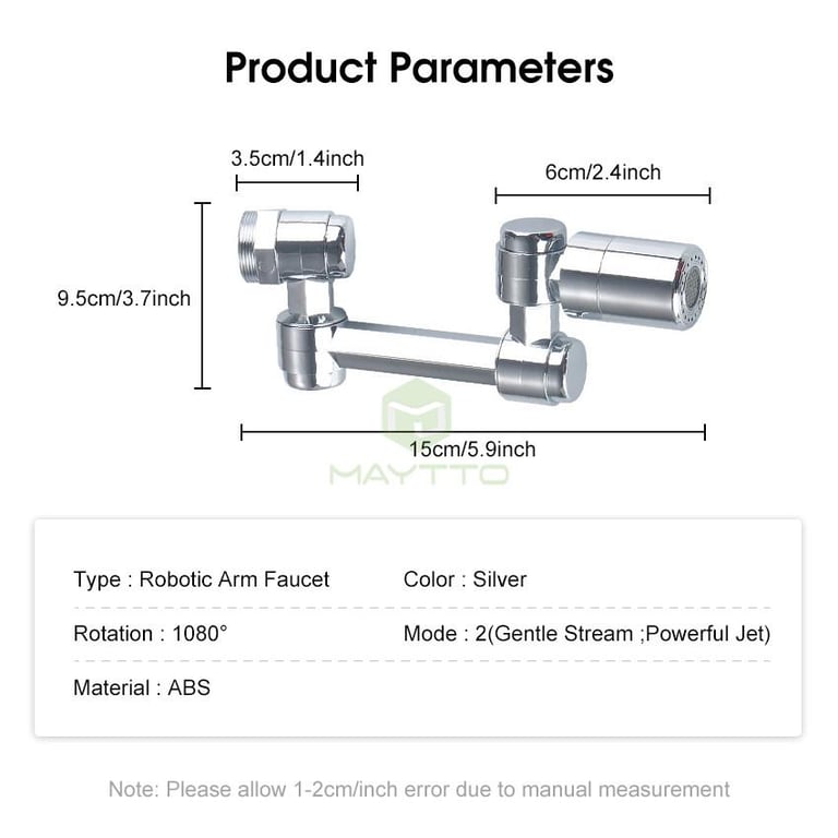 - 1080°All-round Rotation: 1080°large angle rotation for easy washing. 3 adjustment ports are all adjustable 360° all-round and can be easily bent or folded to reach every corner of the sink for easy cleaning.