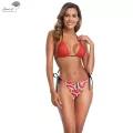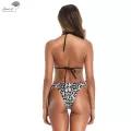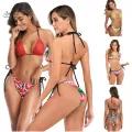 Amart Women Bikini Set Halter Bra Top with Chest Pads Printed Panties Swimwear Set