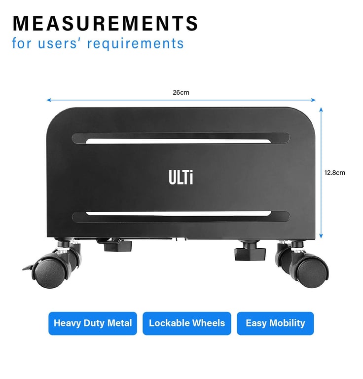 ULTi CPU Rolling Stand for Computer PC Tower Desktop ATX-Case, Steel Mount Holder, Ventilation, Lockable Caster Wheels
