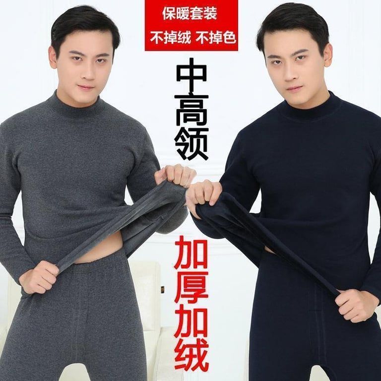 Constant Temperature Xiang Large Size Cold-Proof Suit for Middle-Aged and Elderly Men Winter Thermal Underwear Thickened Fleece-Lined Turtleneck Men's Dad
