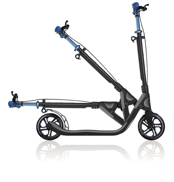 - 1 sec fold up scooter for adults with high-rebound PU casted 205mm front & 180mm back wheels with ABEC7 bearings.