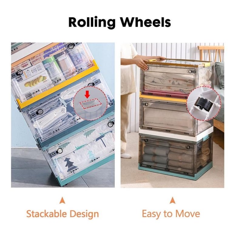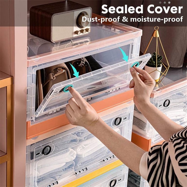 28L/52L/82L Heighten Foldable storage box stackable Organizer 2/4 side door open storage box Foldable Organizer storage box