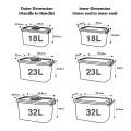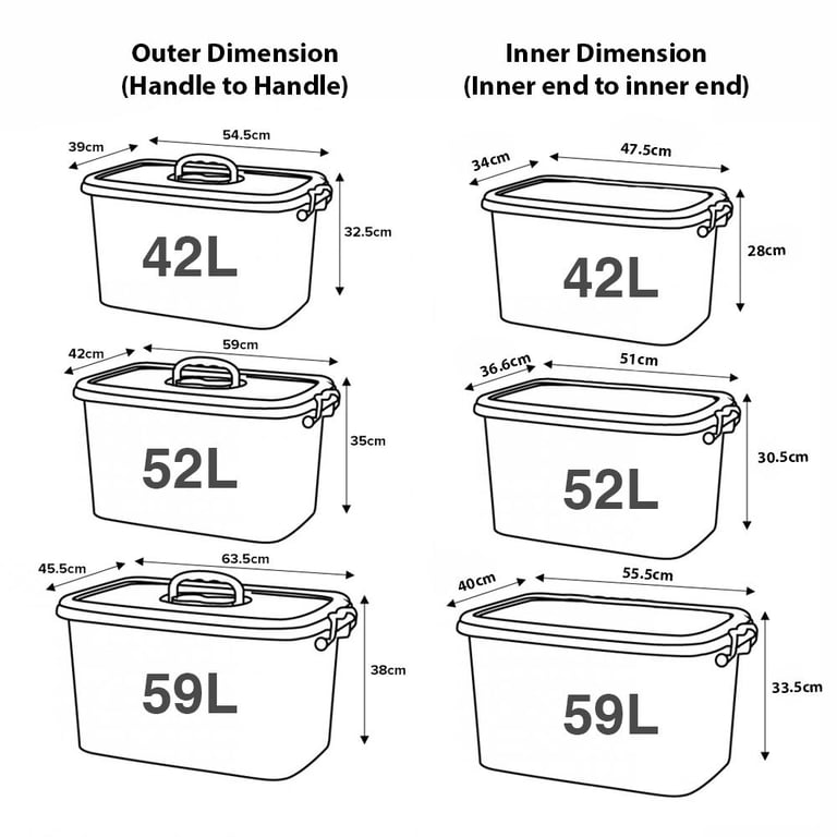 The number of liters will be taken from the upper dimensions of the storage box (LxWxH).
