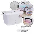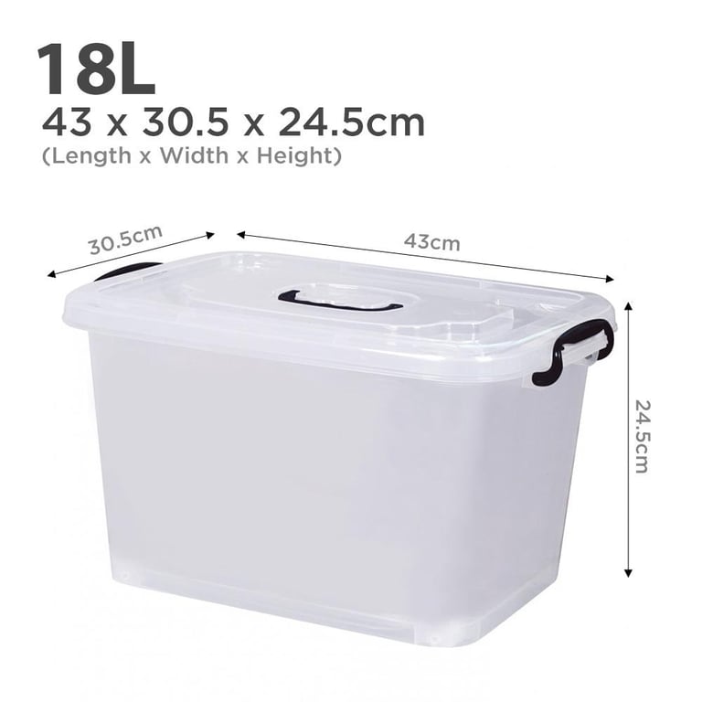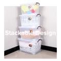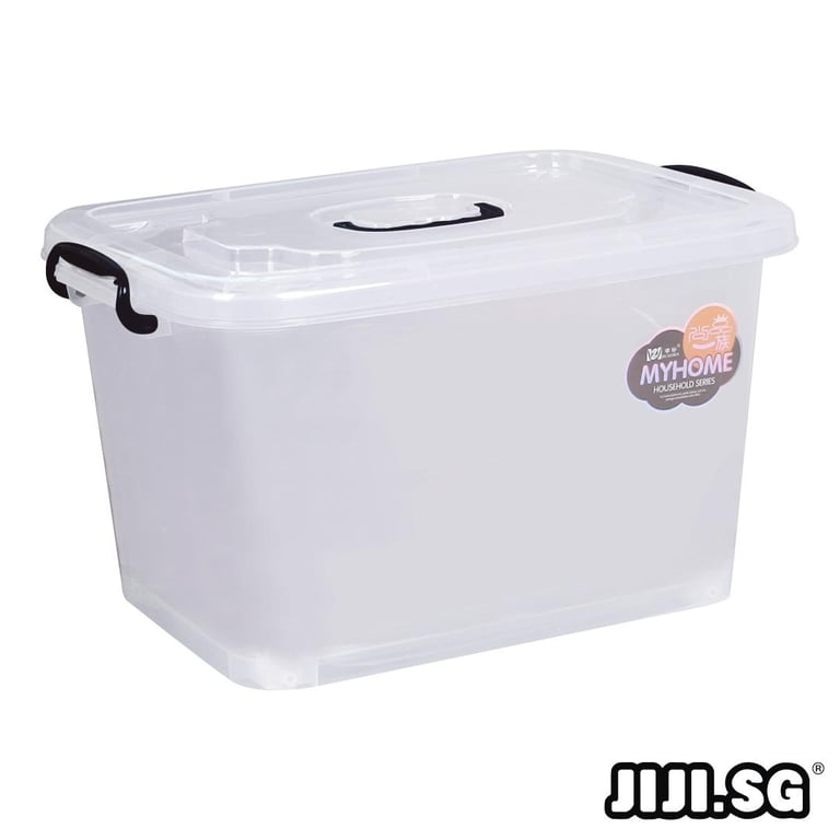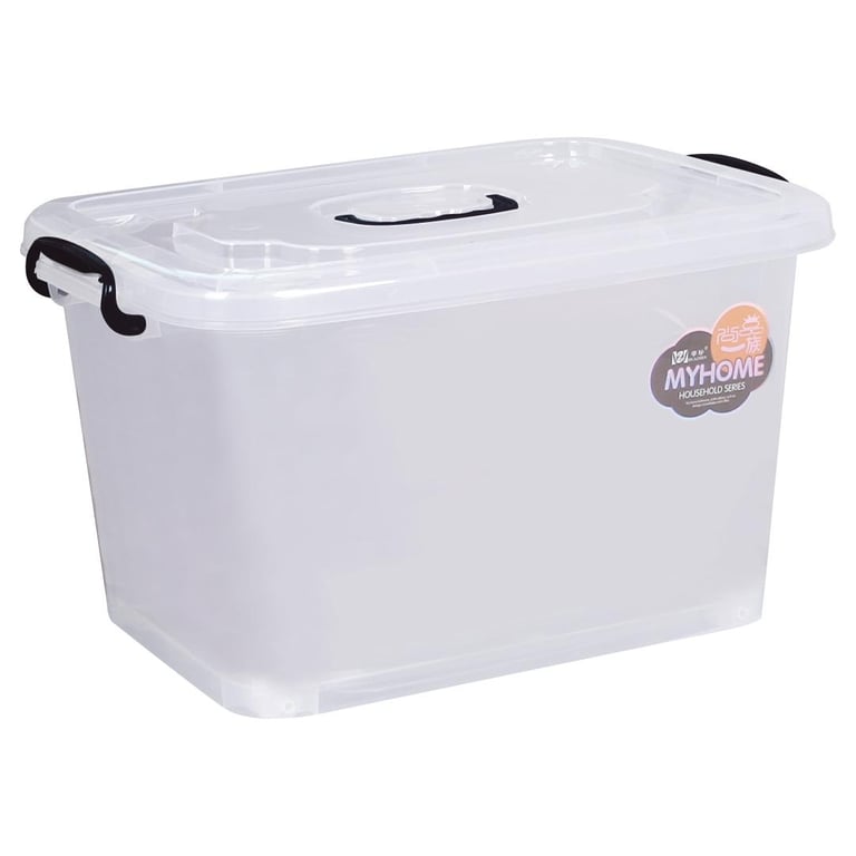 LAURA TRANSPARENT STORAGE BOX, STACKABLE DESIGN WITH HANDLE AND WHEELS. MAKES MOVING AND CLEANING EASIER AND HASSLE FREE.