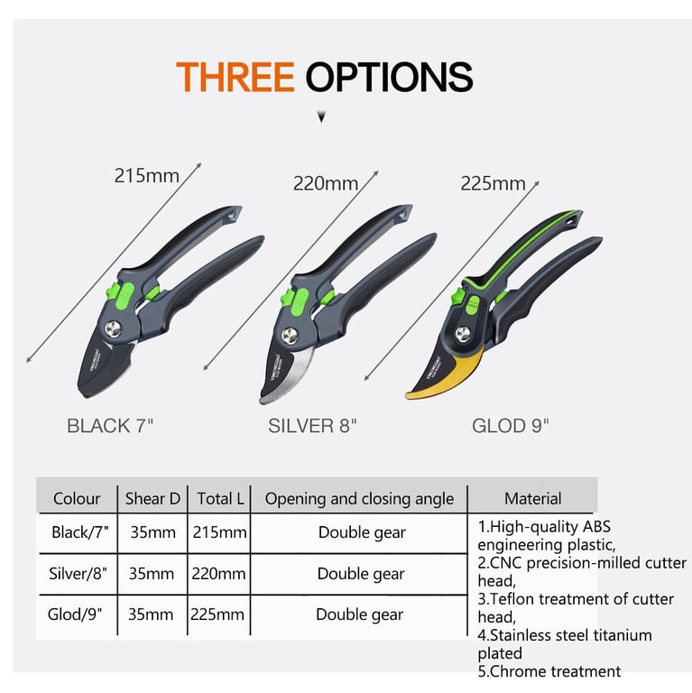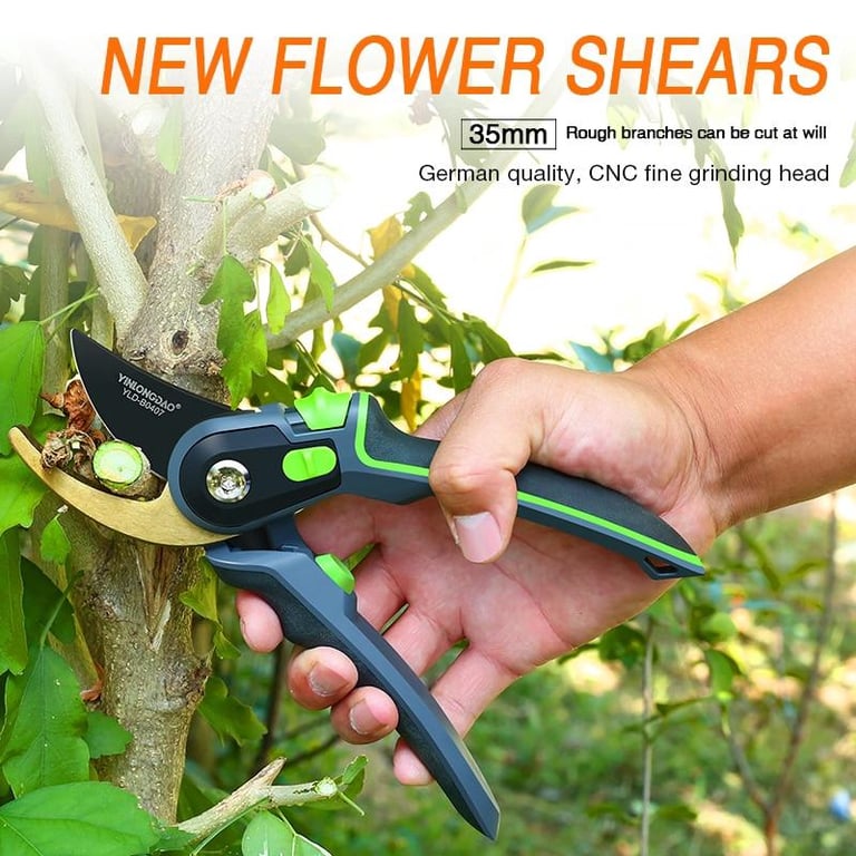 8 :Pruners can cut up to 3/4" diameter size tree branches.This may vary depending on tree species.