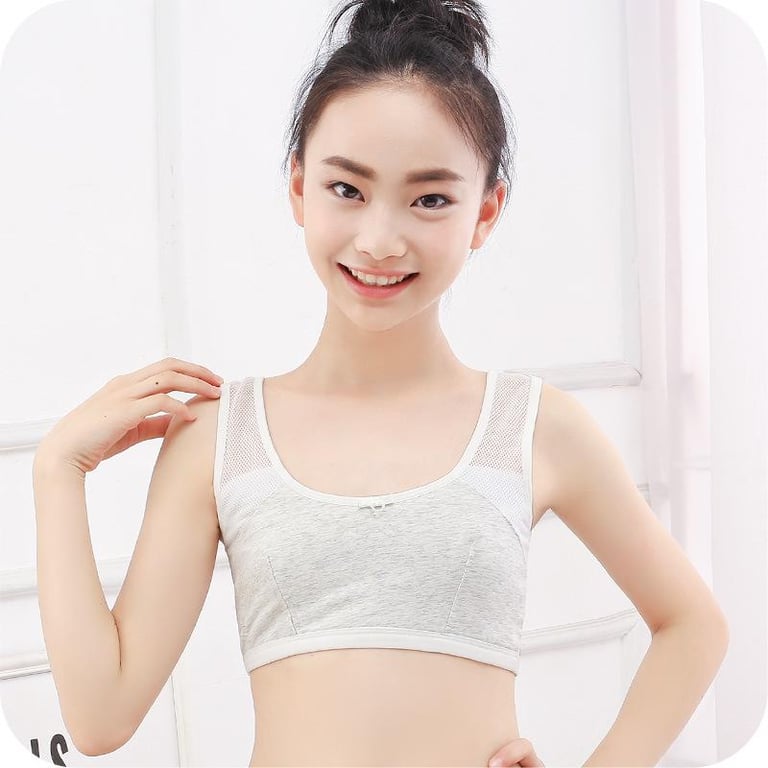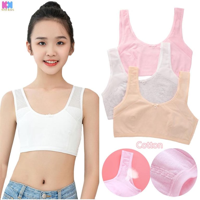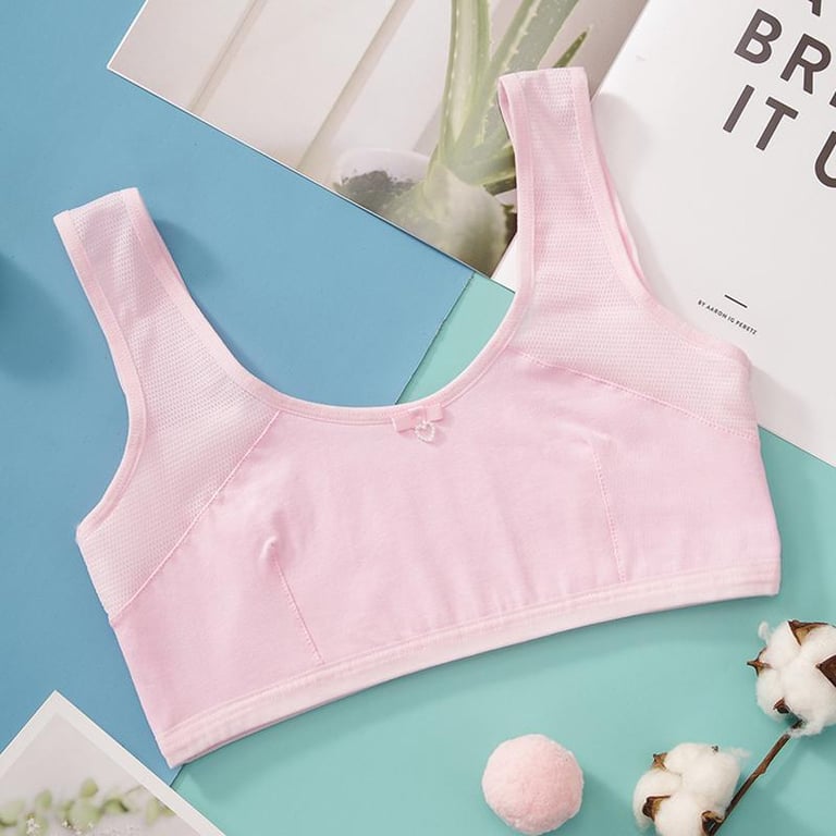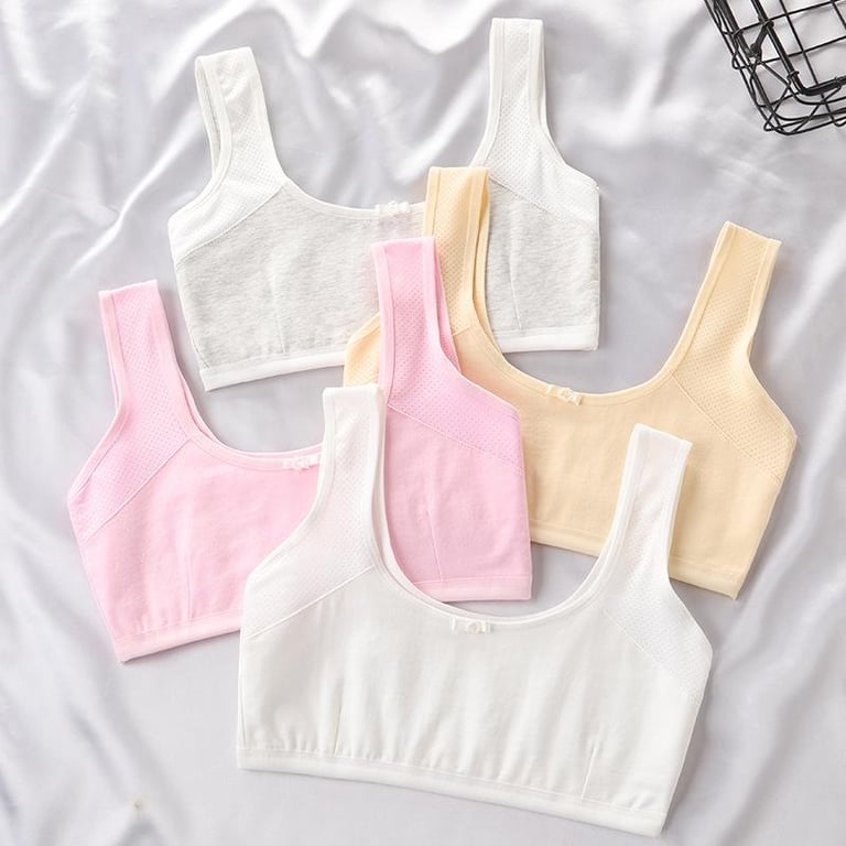 2 Pieces Solid Color Cotton Children Girls bra Underwear Beginner Bra For Kids Junior High School Students Teenage Girls 9-16 Years Developmental Vest 2022 New