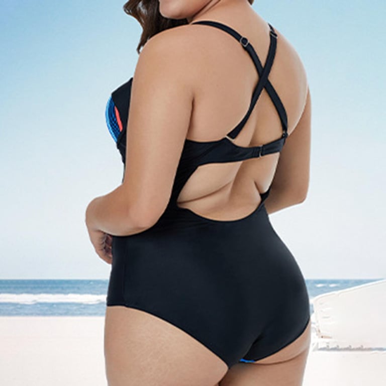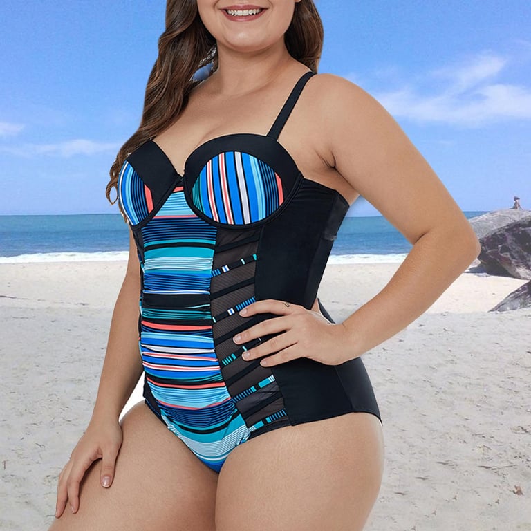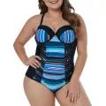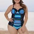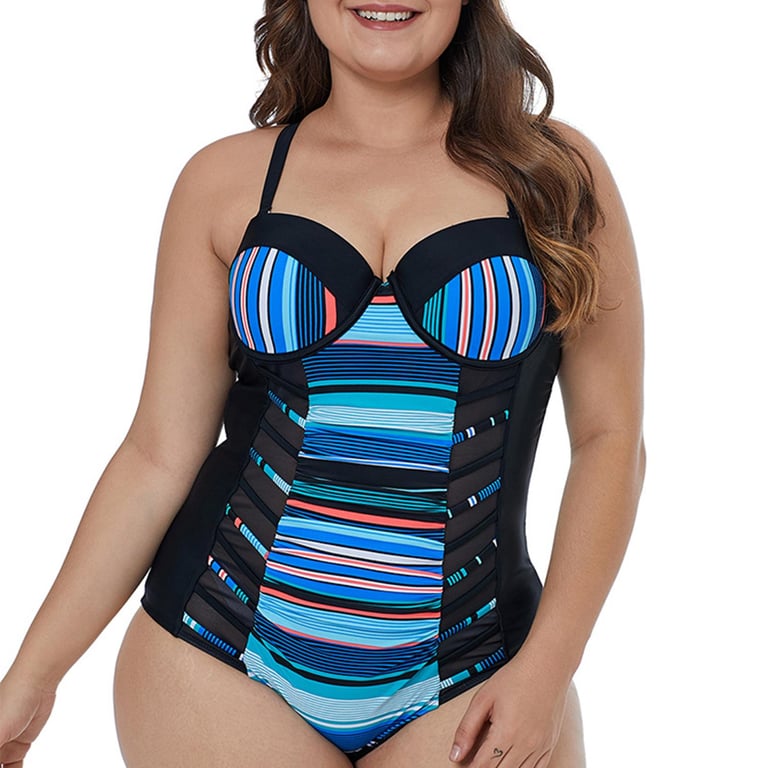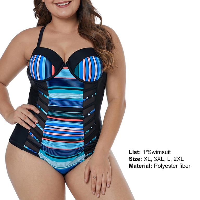 Bullker Bathing Suit Backless High Elasticity L to 3XL One Piece Striped Summer Lady Swimwear Beachwear Trendy Women Swimsuit