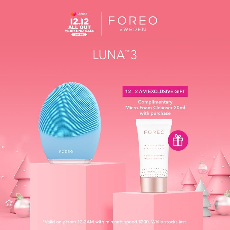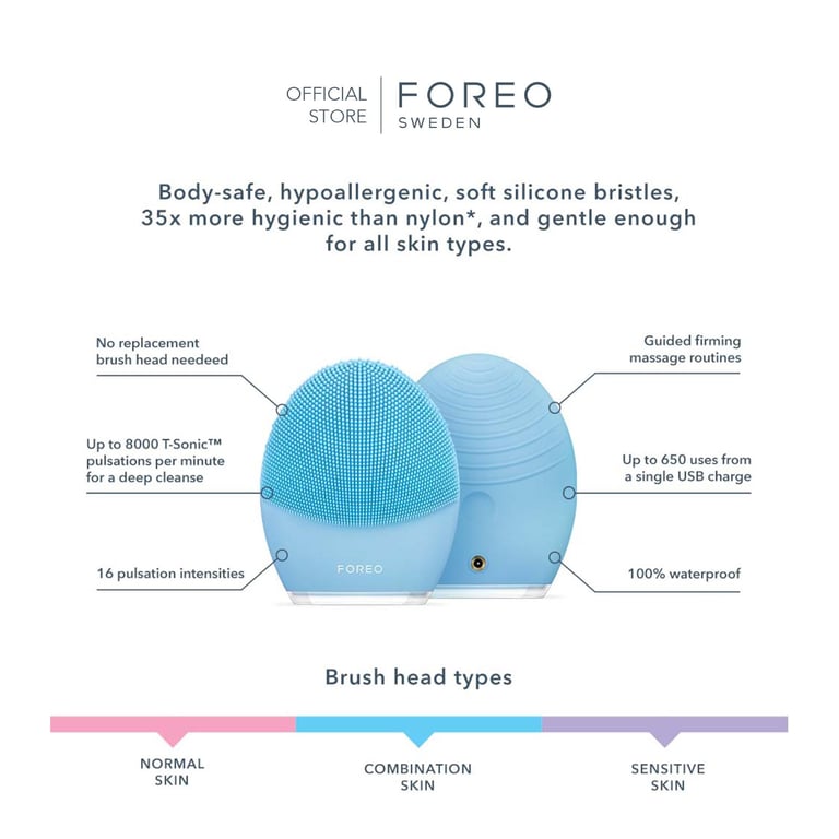 FOREO LUNA 3 for Combination Skin Facial Cleansing & Firming Face Massage Brush, Ultra-hygienic Silicone, Rechargeable [2-Year Warranty, App Connected]