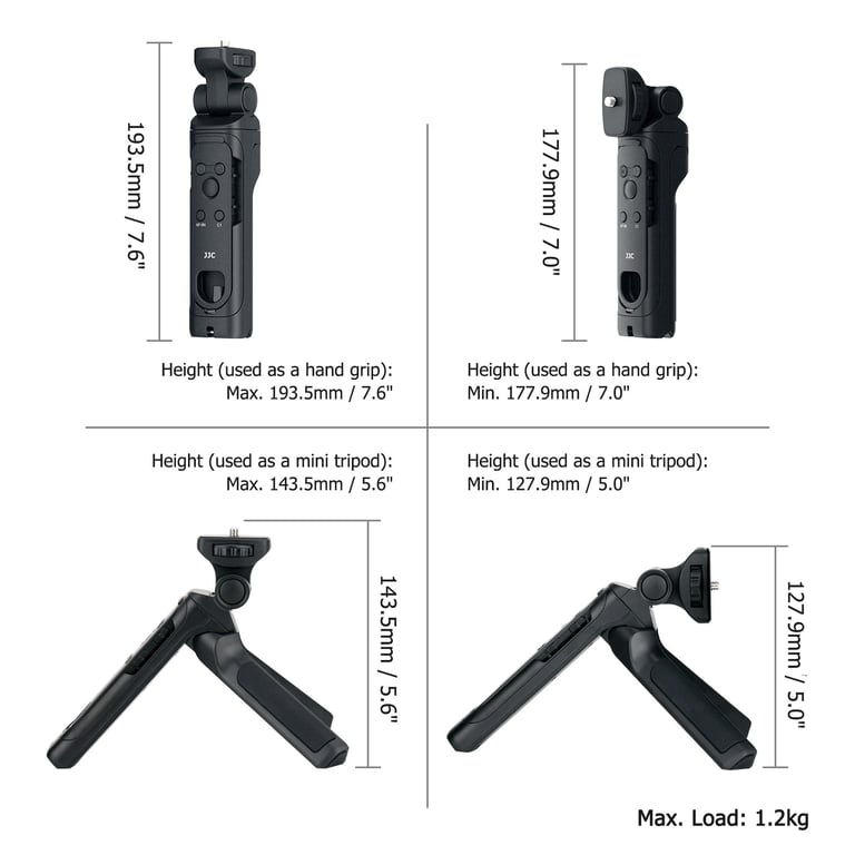 \n\nHeight (used as a mini tripod):143.5mm / 5.6"