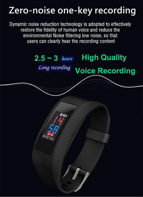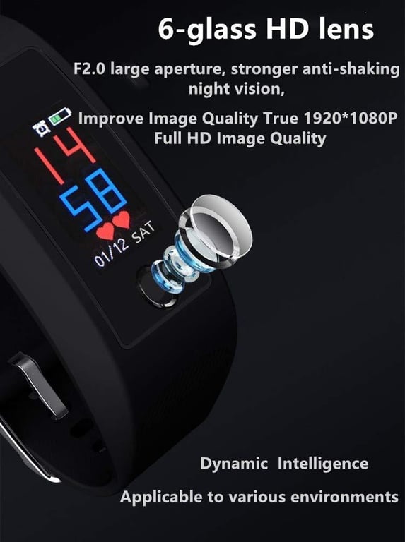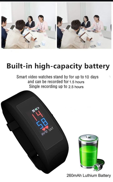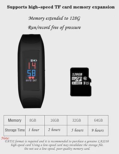- [Max Support 128GB TF Card]: Uses large internal storage capacity to store any other type of data file. High sensitivity touch OLED screen for easy operation, with 32GB Full-speed TF card inside the wristband. Built-in 260mAh battery, can support 1.5 hours Video recording, 3 hours Voice recording