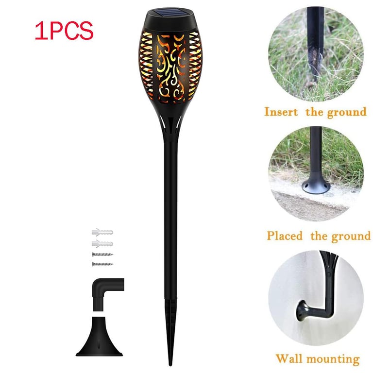 【Easy To Install】Simply connect the flame lights and stick it anywhere you like, such as, your yard, pathways, pool, garden, bench, patio, fence, deck for party, camping, barbecue, wedding, Christmas, Halloween, Thanksgiving. And If the ground is too hard, do not twist or hammer it with force. Try to soften the ground with water and then insert into the ground.