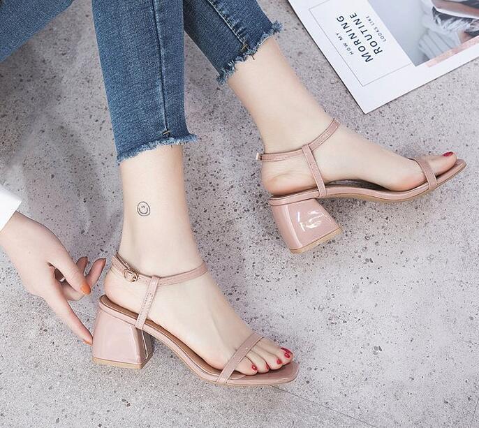 Internet Celebrity Sandals for Women 2021 Summer New Korean Style Versatile Square Buckle Shallow Mouth Semi-high Heeled Grandma Shoes Chunky Heel Closed Toe Single-Layer Shoes
