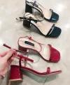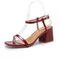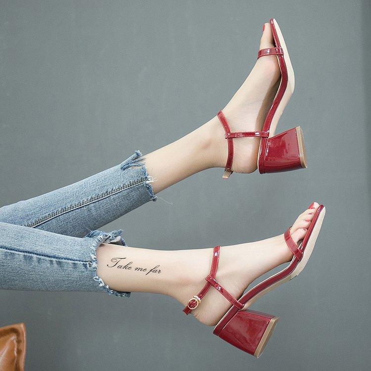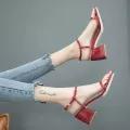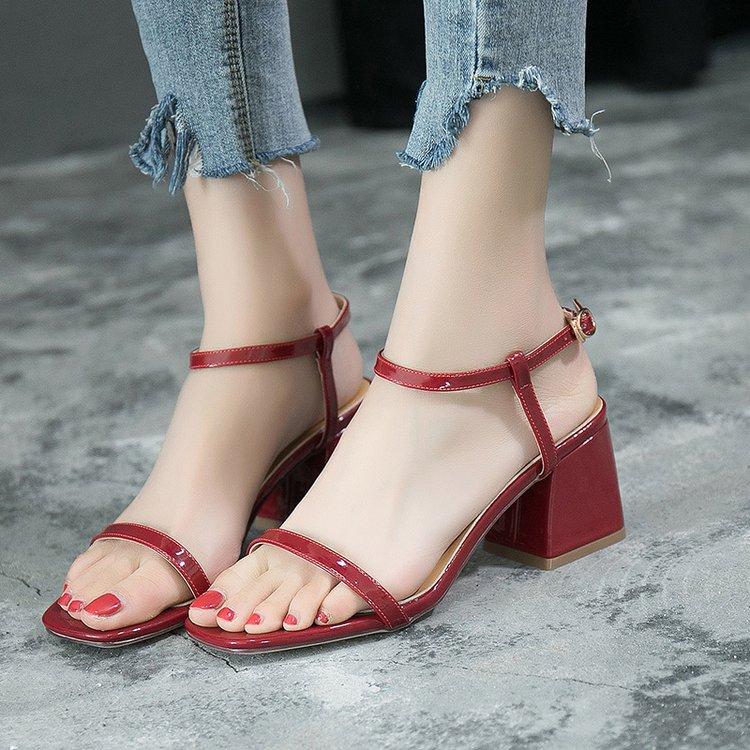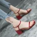 Women 'S Buckle Red High Heel Sandals 2022 Summer Retro Chunky Heel Semi-high Heeled Wedding Shoes Peep Toe Roman Women 'S Shoes Fashion