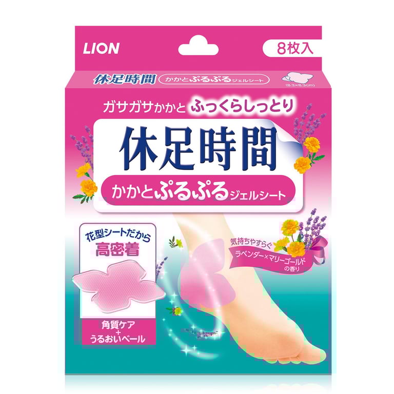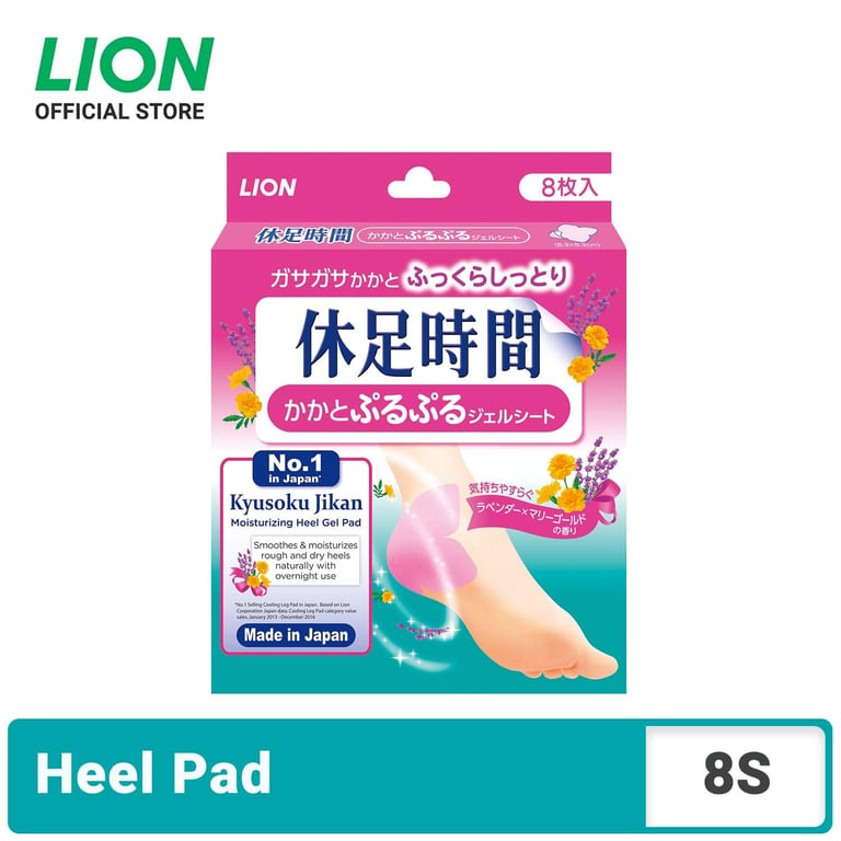 Kyusoku Jikan Moisturizing Heel Gel Pad 8s help to make dry and rough heels feel smooth, supple and moisturized naturally with overnight use. Smoothers rough skin around the heels with Fruit Acid. Moisturizes dry heels with high content gel pad and Jojoba Oil. Soothing Lavender and Marigold fragrance. Unique flower shape fits well to the arch of heels. Gentle on skin, easy and convenient to use.