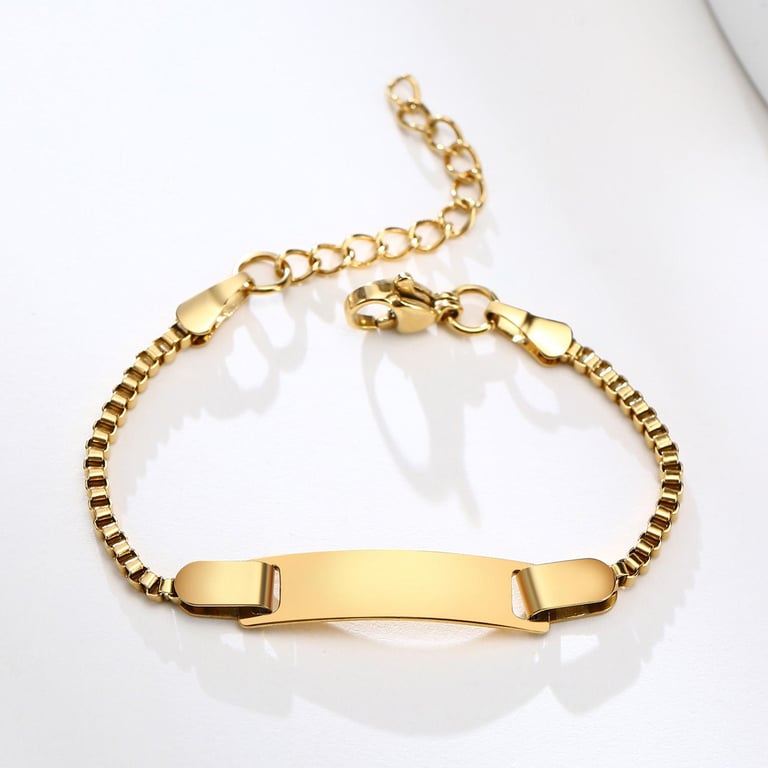 Vnox Personalized Engrave Baby Kid Bar Bracelet Box Chain Custom Name Children Infant Boy Girls Stainless Steel To Daughter Son Birtyday Gift