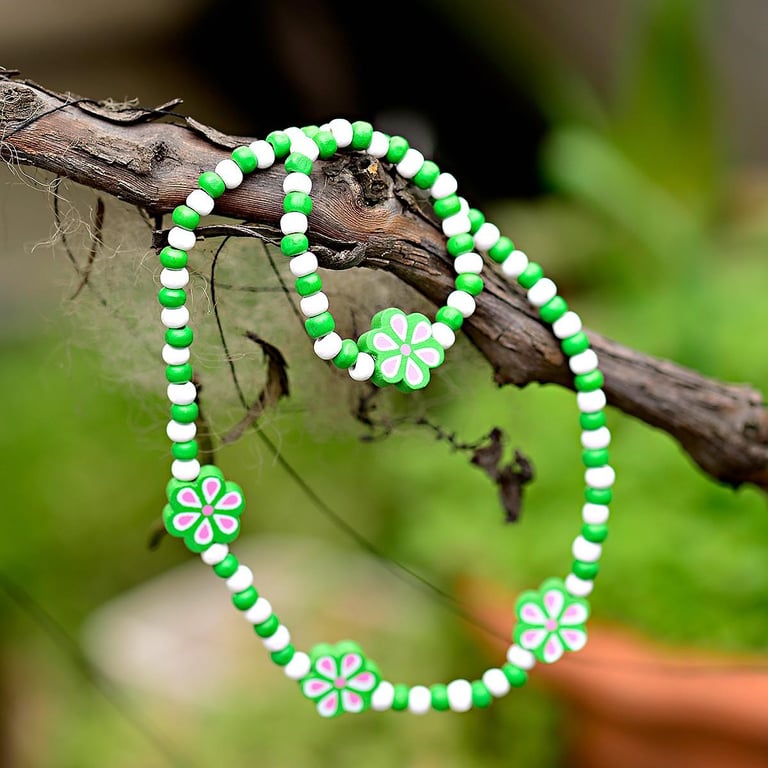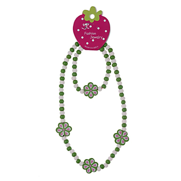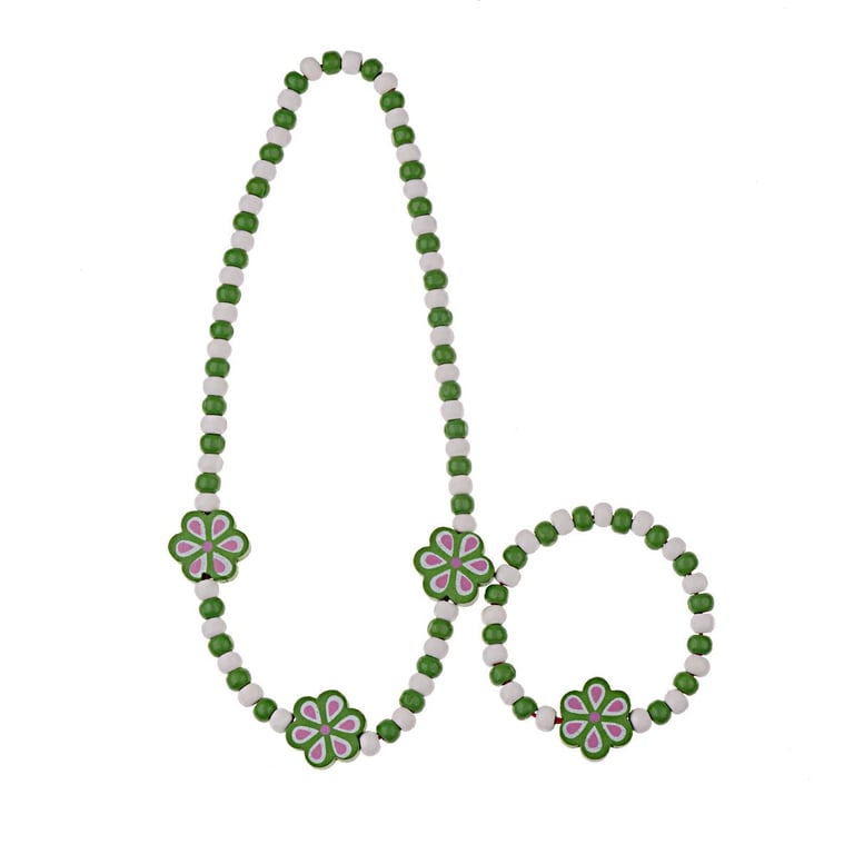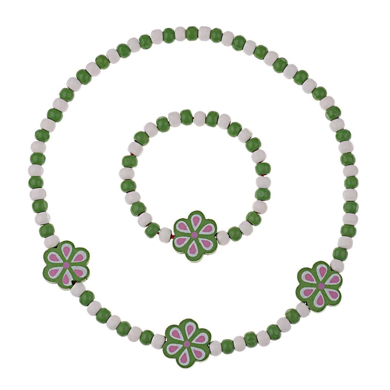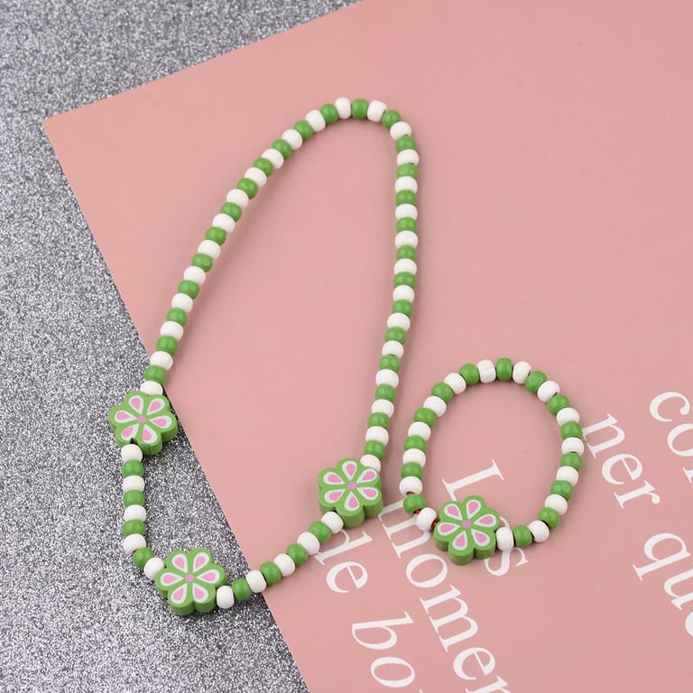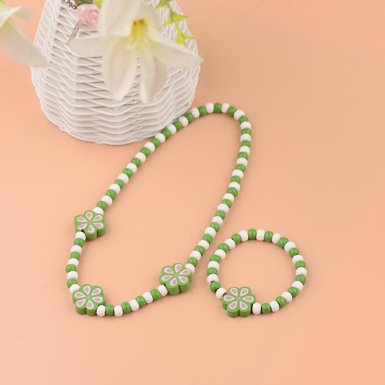 Children Jewelry Sets For Girls Green Wooden Flower Pattern Kids Children's Birthday Party Necklace Bracelet Jewelry