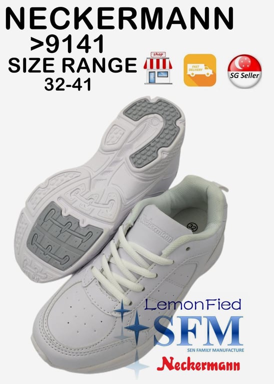 NECKERMANN 9141 All White All Black SIZE 32-41 LACE School Shoes Sneaker Indoor Outdoor Casual Uniform EVA SHOE LEMONFIED