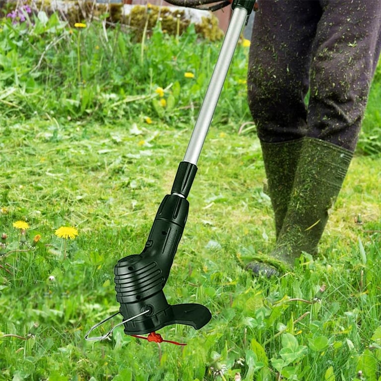 Cordless Grass Trimmer Easy Grass Cut Lightweight Garden Electric Strimmer with Blades, Adjustable Telescopic Long Handle Weed Strimmer Cutter Rechargeable