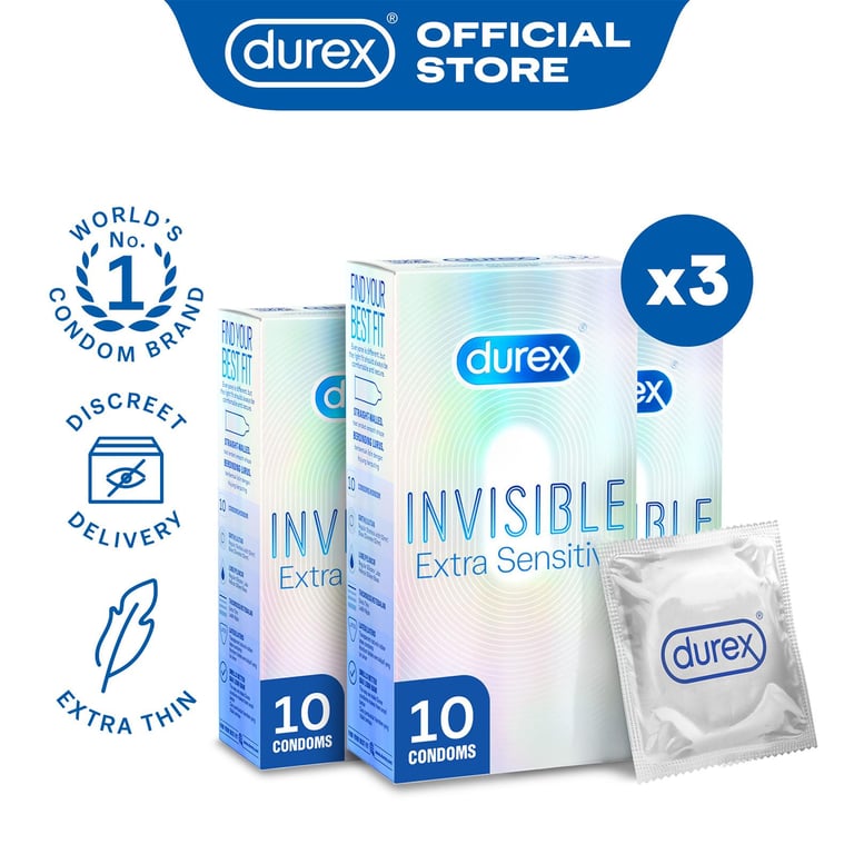 [Bundle of 3] Durex Invisible Extra Thin and Extra Sensitive Condoms 10s