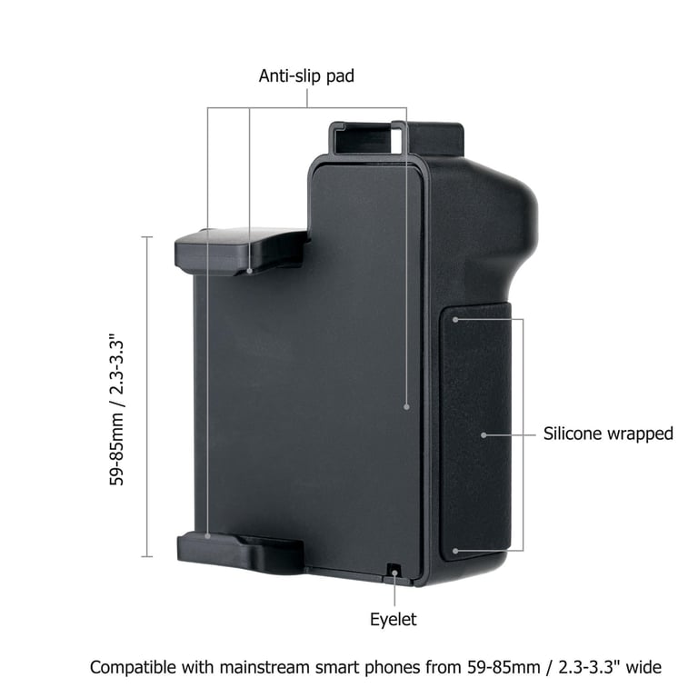 Fits mainstream smart phones from 59-85mm / 2.3-3.3 inch wide.
