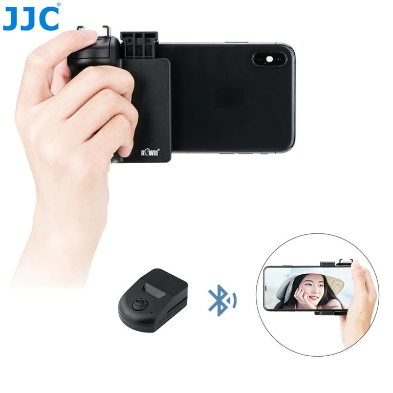 JJC Bluetooth Remote Phone Holder Clip, Wireless Control Shutter Tripod Selfie Stick Handle Mount for iPhone Samsung Huawei Smartphone, to Take Selfies, Group Photo and Stable One-Handed Video