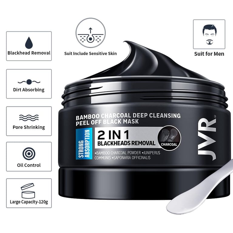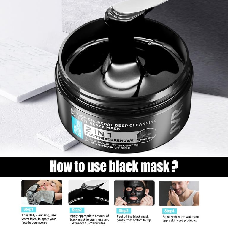 Specification:Type: Bamboo Charcoal Blackhead Remover Facial Mask for Men Peel Off MaskBrand: JVRWeight: 120gTarget skin type: All skinsEfficacy: Blackheads Remover, Skin cleaning,Pore Cleaner,Blemish Clearing