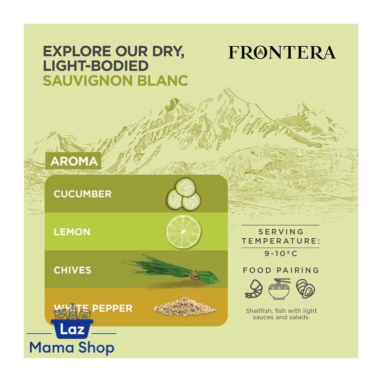 The grapes are hand-picked and harvested in March. The juice undergoes cold fermentation in stainless steel tanks for two months. Bright, greenish yellow in color, the Frontera Sauvignon Blanc shows true varietal character with notes of peaches and fresh citrus. On the palate, the wine is light and fresh with a balanced palate and an attractive, crisp acidity. Vintage may vary.