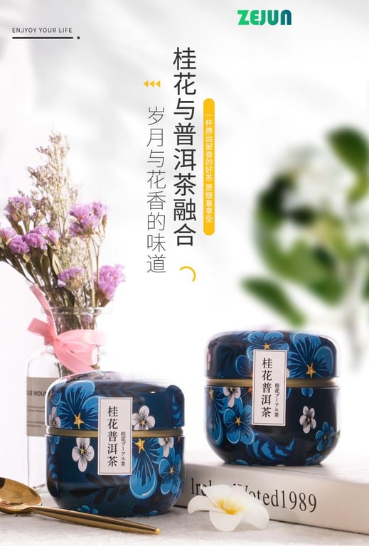 A confession of osmanthus and Pu'er The charming sweet-scented osmanthus fragrance blends into the tea soup, mellow and elegant ps: Random color of the jar The color of the cans will be shipped randomly and no designation is accepted. Customers who mind, please place your order carefully. Production license number: SC11435052403595 Storage method: room temperature, dark, dry Shelf life: 450 days Origin: Mainland China Province: Fujian Province City: Xiamen Packing type: canned Packing method: Packing Tea Type: Combination Scented Tea