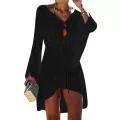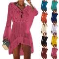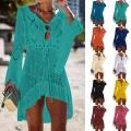 Cover Up Beachwear Women Solid Color Mid-length Loose Short-sleeved Soft Tropical Dress
