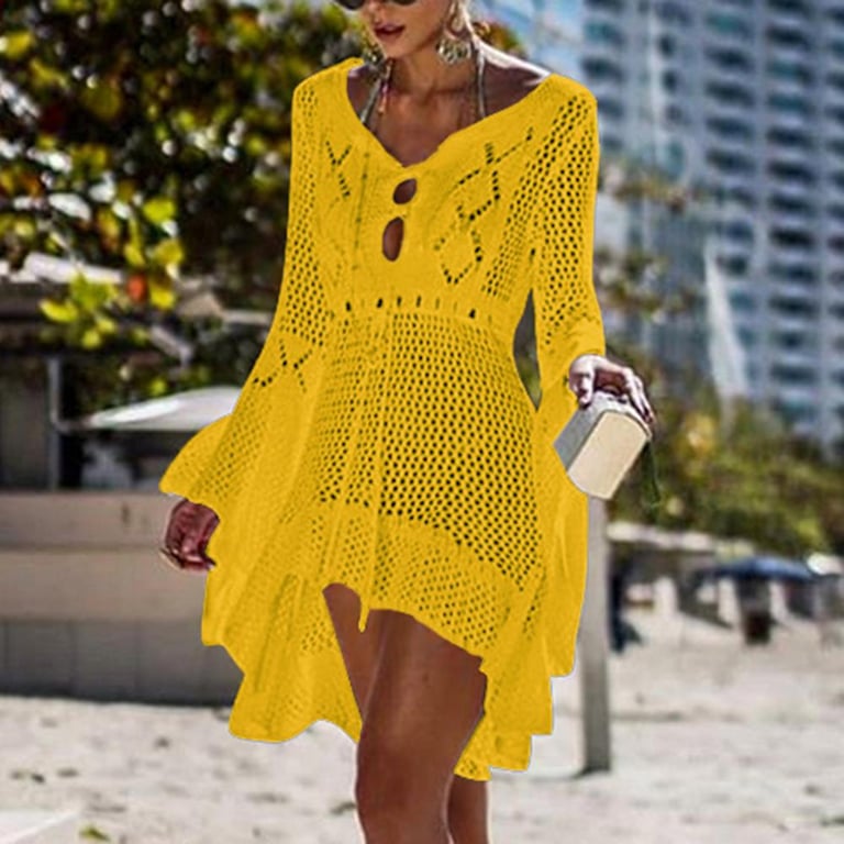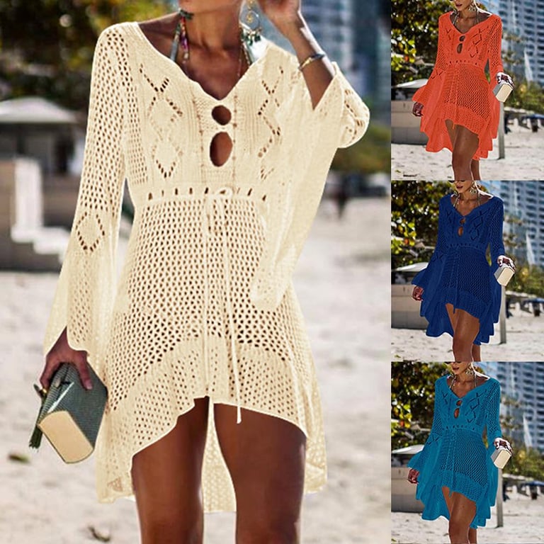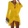 Eekisuf Summer Women Hollow Out Knit Skirt Trumpet Sleeve Beach Coast Bikini Blouse Sun Protection Clothing