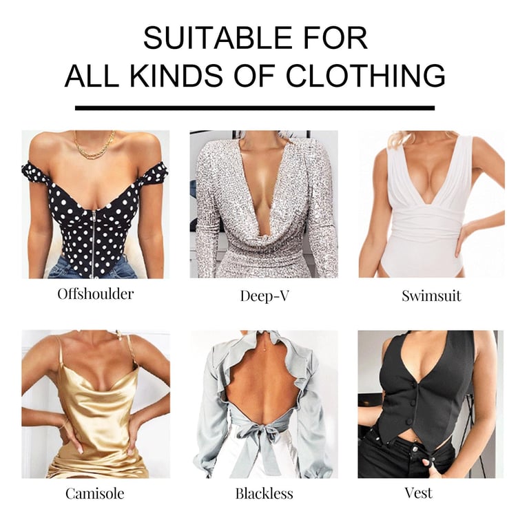 Thin design makes it suit for backless/strapless dresses, t-shirts, wedding gowns, sports bras, & swimsuits.Give you a natural, more youthful appearance, very thin so it isn't easy to detect and It has a strong adhesion and does not fall off easily.. attached to the body like second skin.