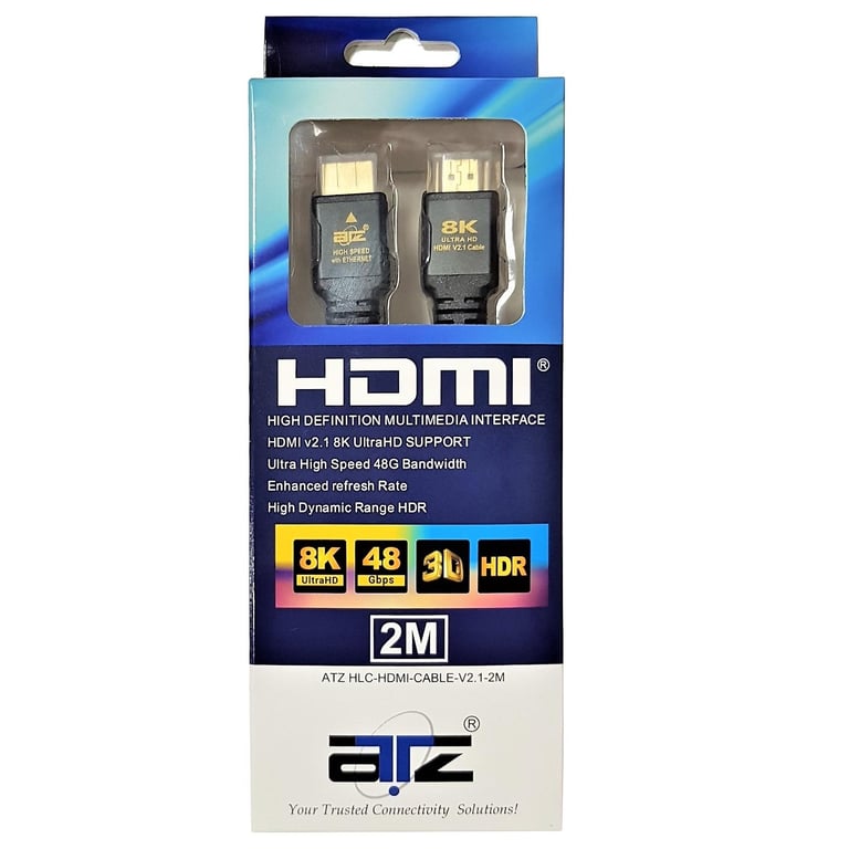 ATZ 2m HDMI Cable 8k HDMI v2.1 Ultra High Speed 8K at 120Hz 48Gbps HDMI Cable 2.1 with Ethernet - 2 meter hdmi 8k hdmi cable 8k eARC, Ultra High Speed Cord 4K120Hz/8K60Hz Support Dynamic HDR eARC Dolby Atmos HDCP
