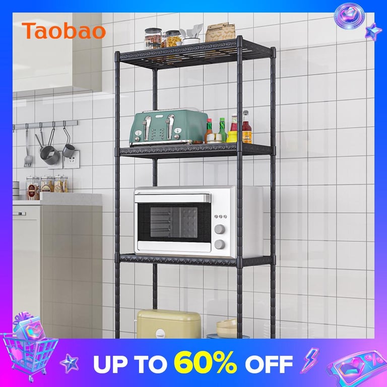 Kitchen Storage Rack Floor-Standing Multi-Layer Microwave Oven Stainless Steel Storage Shelf Bathroom Living Room Storage Rack