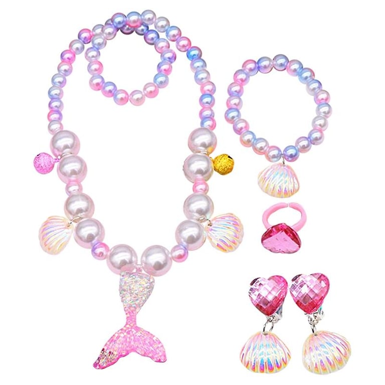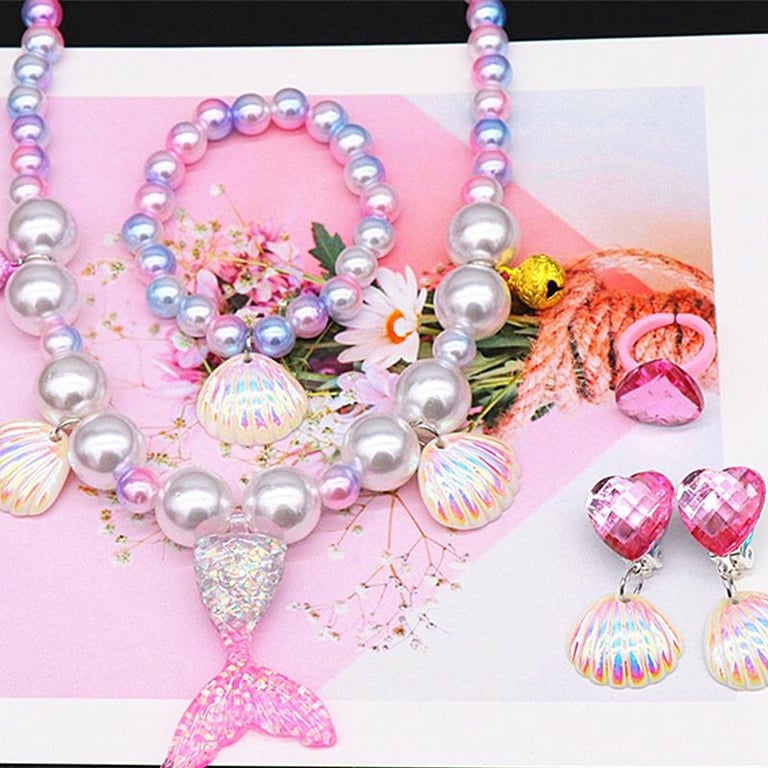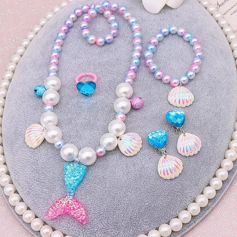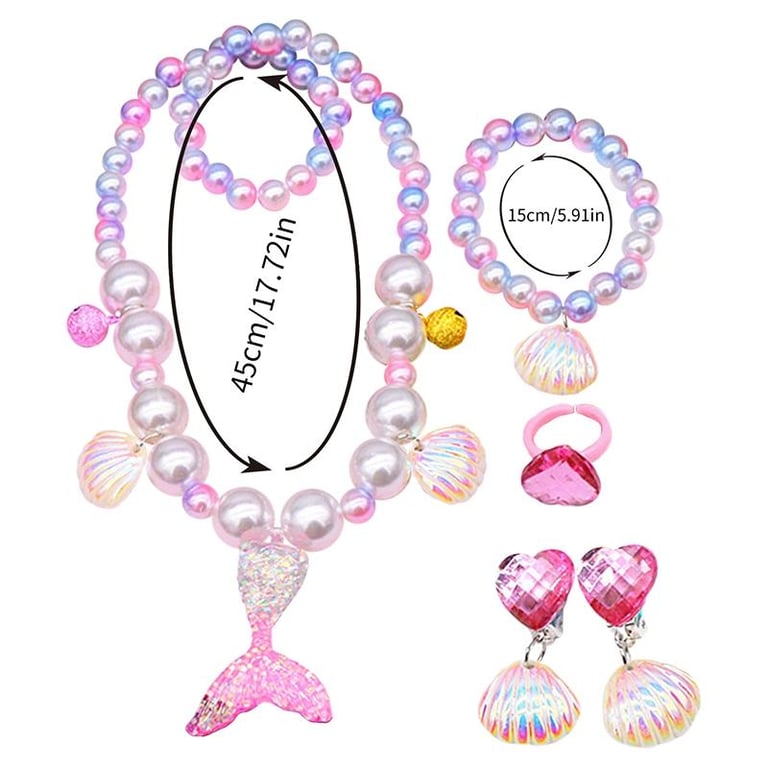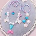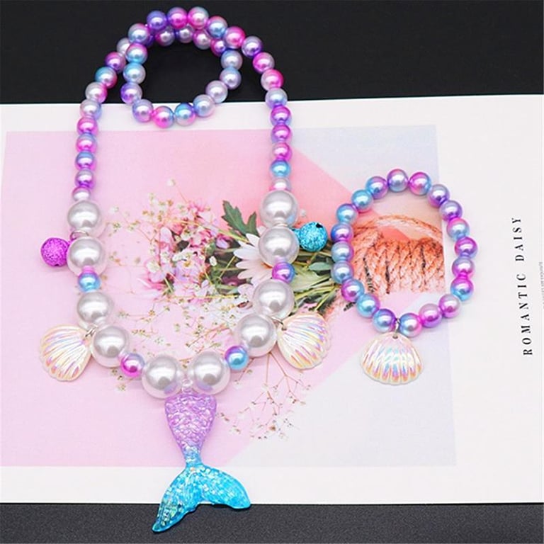 Kids Mermaid Jewelry Set Baby Girl Cute Necklace Bracelet Cute Cartoon Necklace Hair Accessories Gift For Children Girls Birthday Xmas